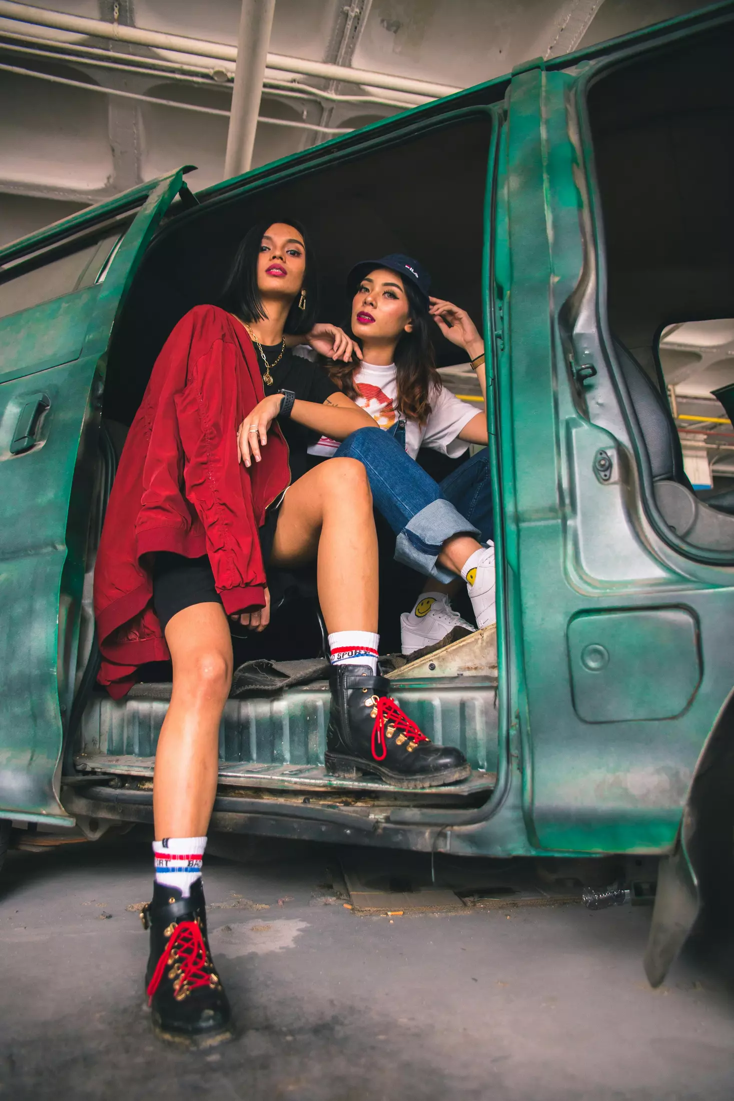 Ladies wore fishnets with jeans and T-shirts. The look was often styled with shorts, boots, and a sweater or flannel.